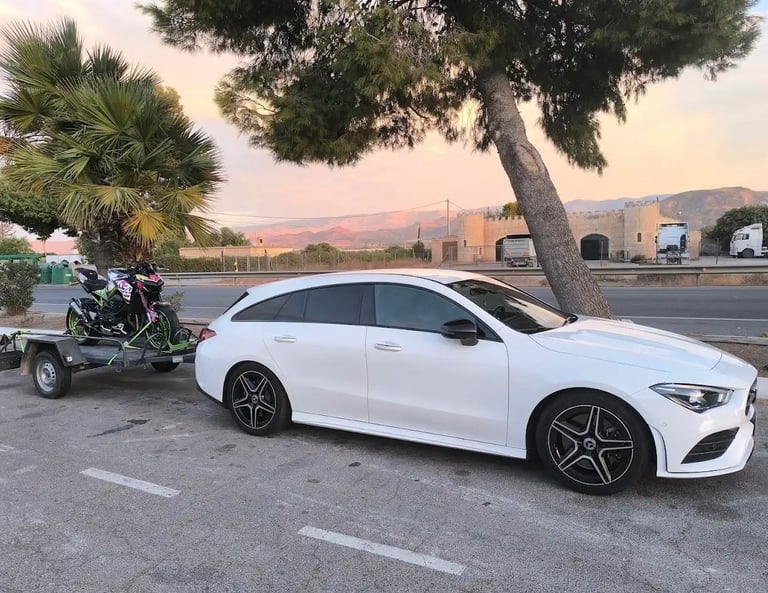 Remolque para hasta 3 motos. Estable y robusto. Con rampa y rueda de repuesto.